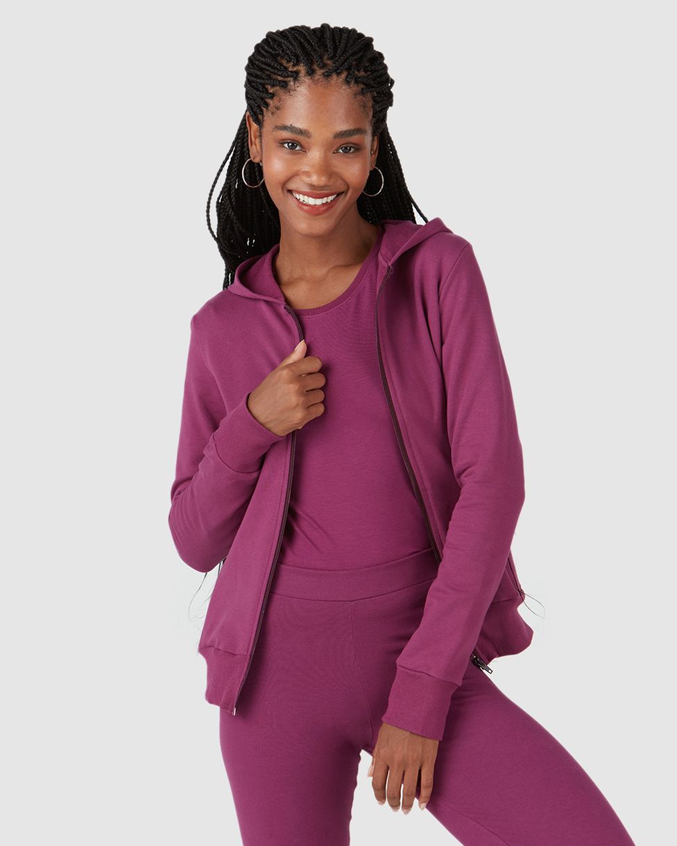 Jaqueta Básica Feminina Com Capuz Moletom Stretch Flanelado