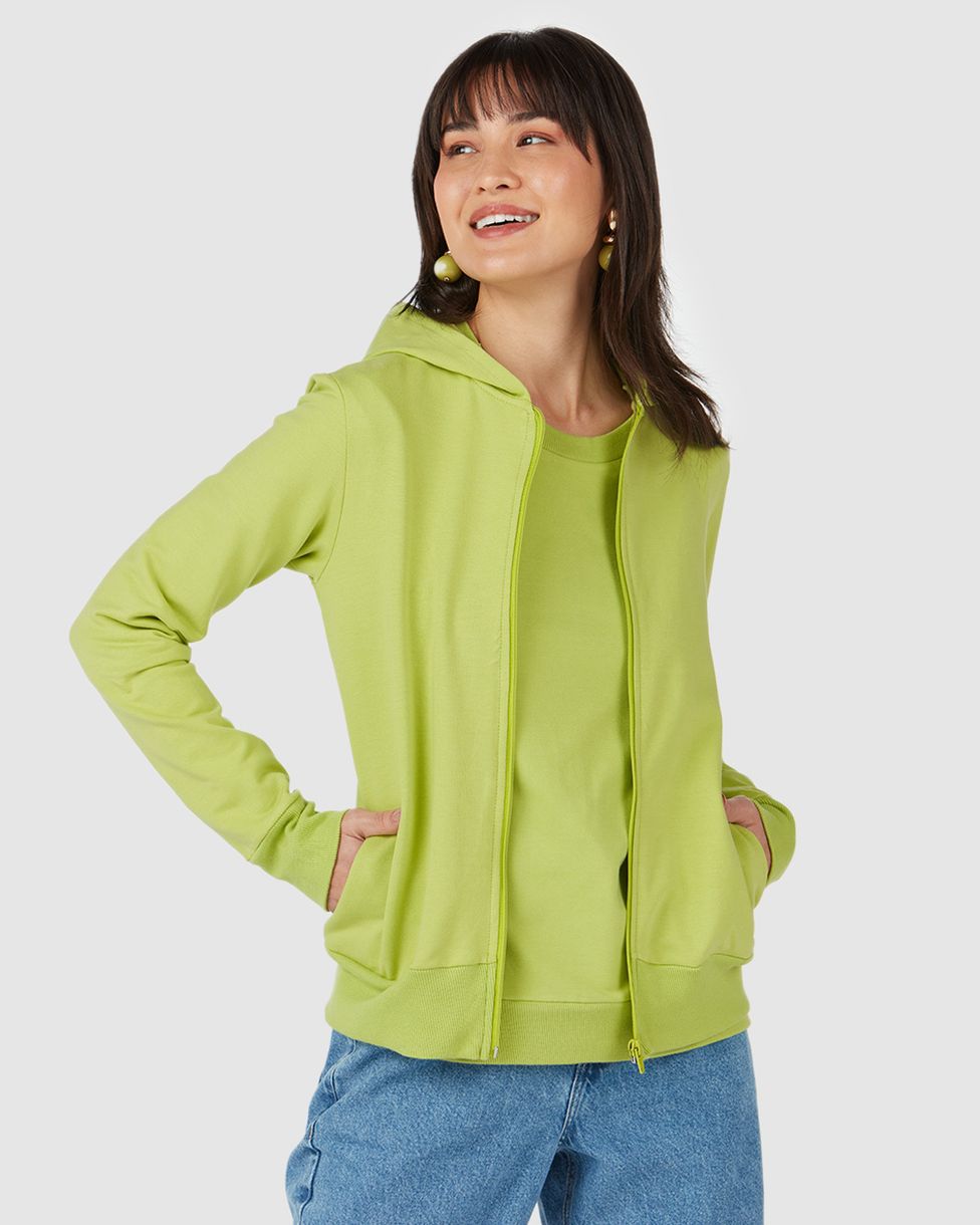 Jaqueta Básica Feminina Com Capuz Moletom Stretch Flanelado