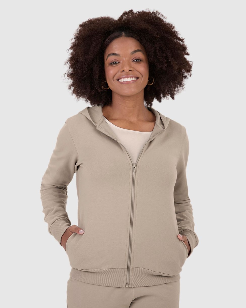 Jaqueta Básica Feminina Com Capuz Moletom Stretch Flanelado