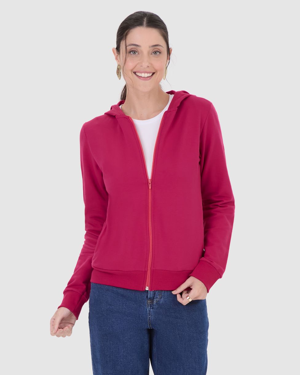 Jaqueta Básica Feminina Com Capuz Moletom Stretch Flanelado