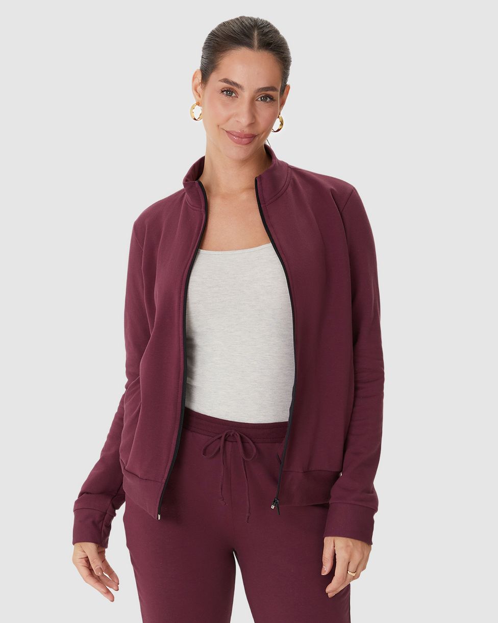 Jaqueta Básica Feminina Gola Alta Moletom Stretch Flanelado