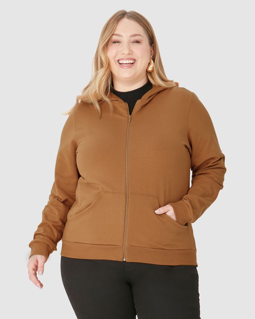 Jaqueta Básica Feminina Plus Size Em Moletom Stretch Flanelado