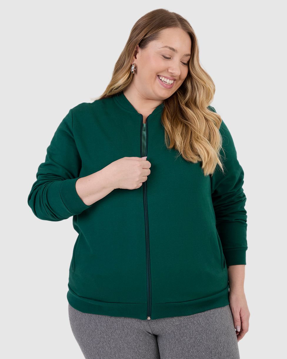 Jaqueta Básica Feminina Plus Size Gola Canelada Em Moletom Flanelado