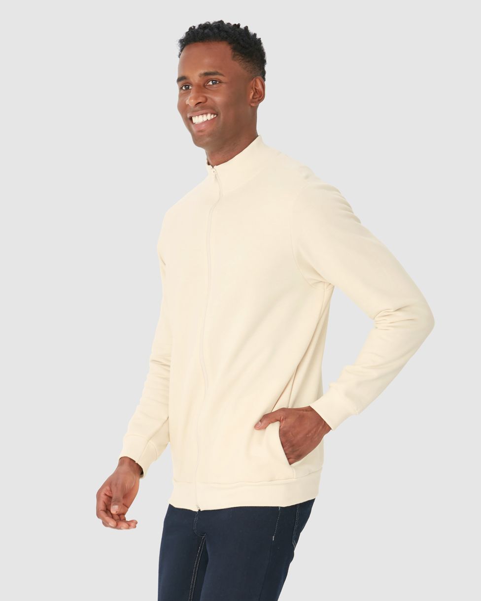 Jaqueta Básica Masculina Gola Alta Em Moletom Flanelado