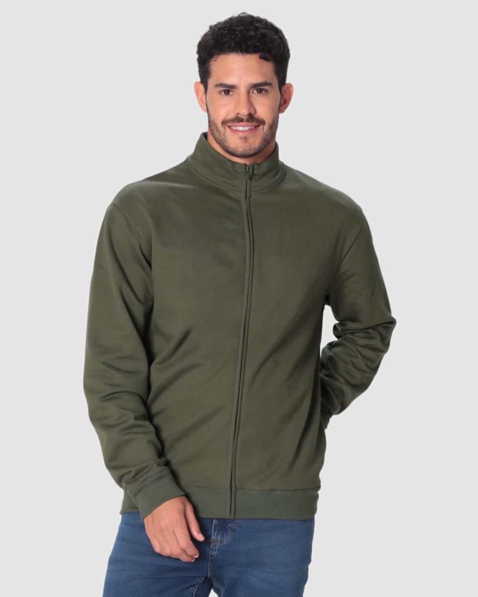 Jaqueta Básica Masculina Gola Alta Em Moletom Flanelado Verde - XGG