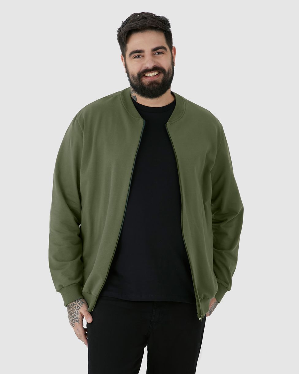 Jaqueta Básica Masculina Plus Size Com Zíper Em Moletom Flanelado