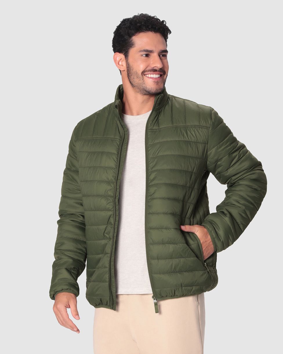 Jaqueta Básica Masculina Puffer Em Poliamida Verde - XGG
