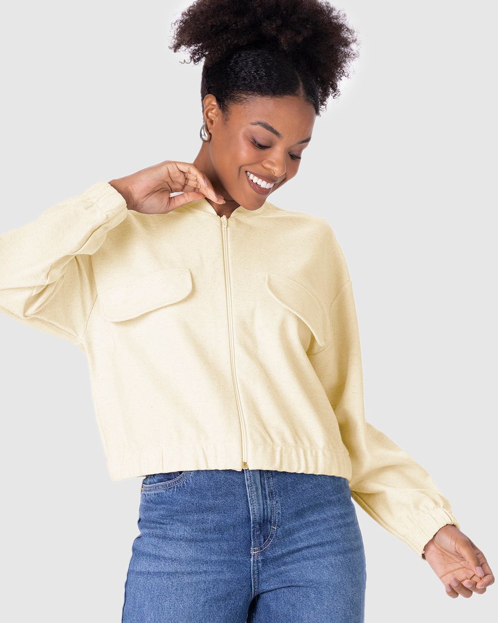 Jaqueta Bomber Feminina Com Lapela Em Moletom Sarjado