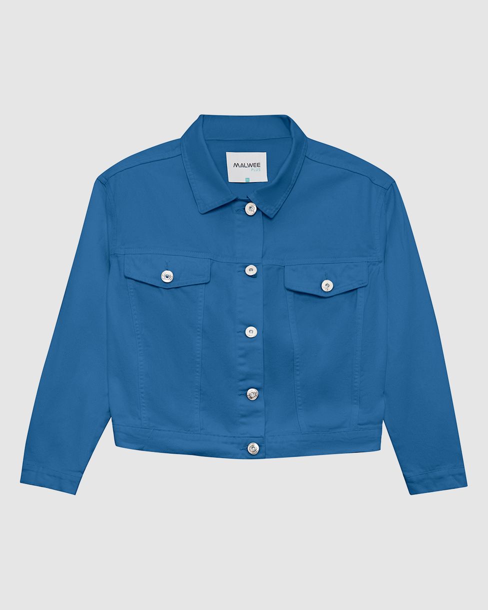 Jaqueta Cropped Feminina Plus Size Em Sarja