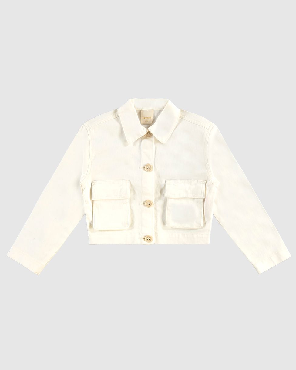 Jaqueta Cropped Menina Bolsos Frontais Em Sarja Com Elastano - Carinhoso