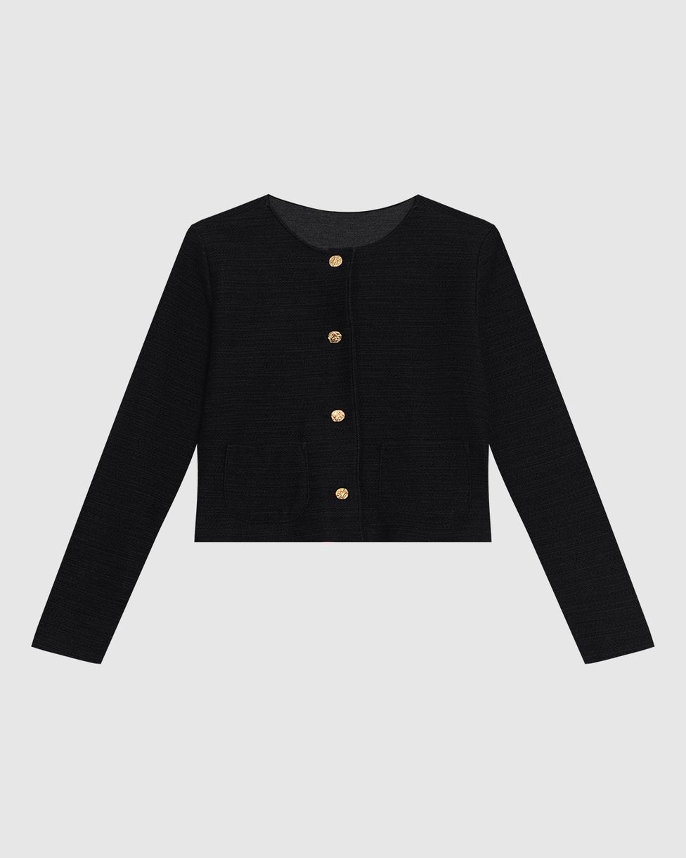 Jaqueta Feminina Box Bolso Quadrado Em Malha Texturizada - ENFIM