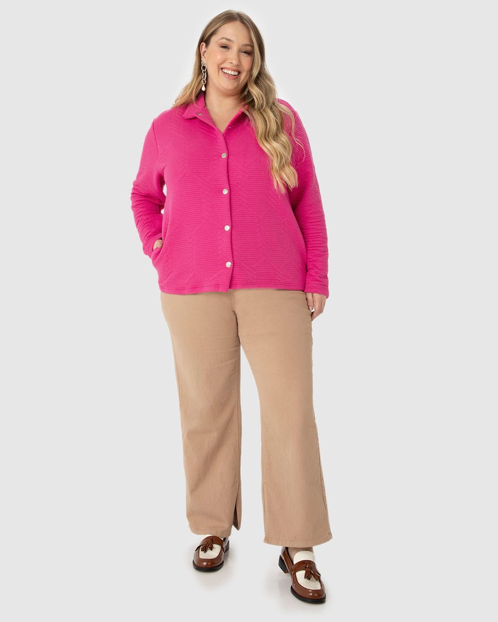 Jaqueta feminina confeccionada em malha matelassê. Jaqueta que apresenta abertura por botões, mangas longas e bolso lateral embutido. Perfeita para a proteção e estilo do dia a dia!