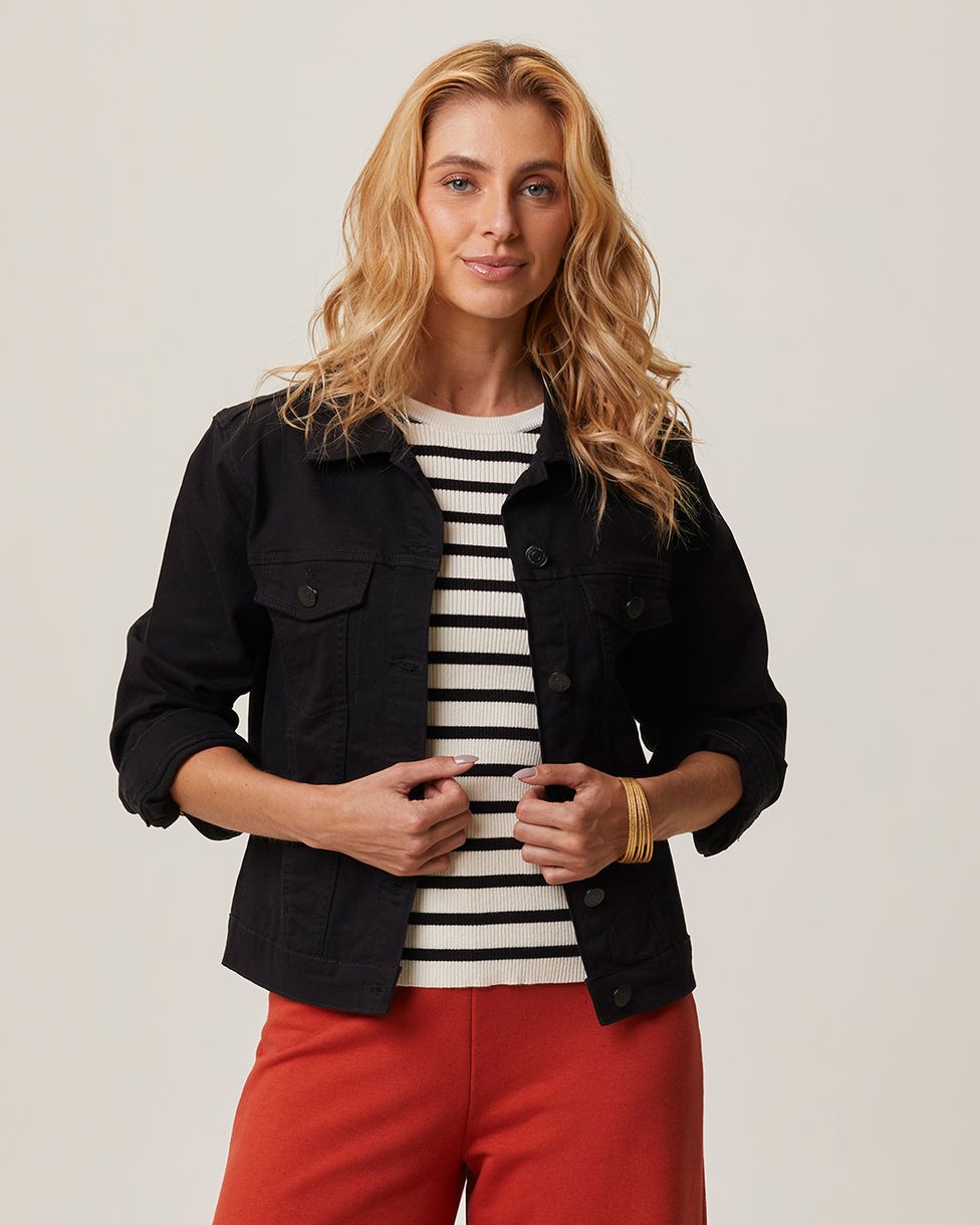 Jaqueta Feminina Tradicional Abertura Por Botões Em Sarja Com Elastano