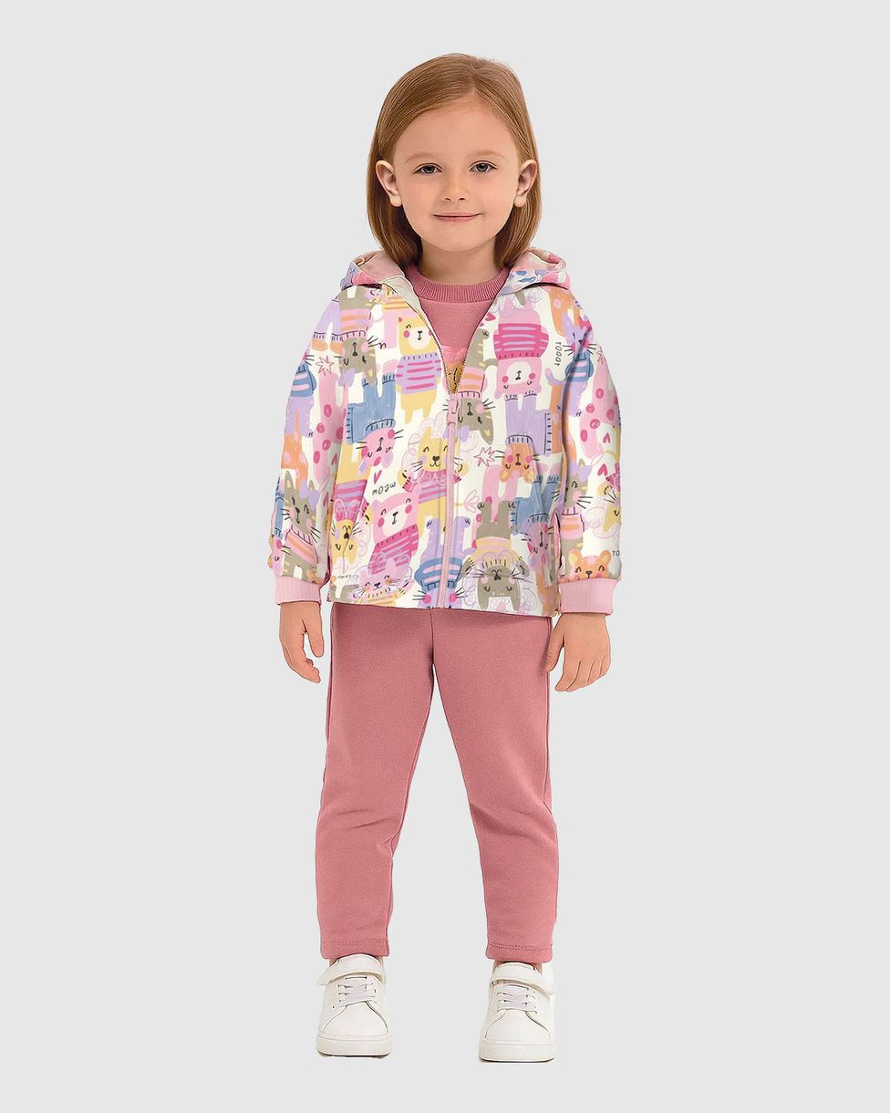 Jaqueta Infantil Menina Bomber Estampada Capuz Forrado Em Tafetá Malwee Kids