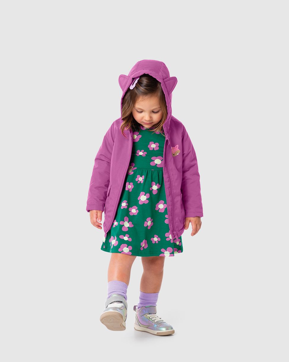 Jaqueta Infantil Menina Com Capuz Em Tafetá Malwee Kids