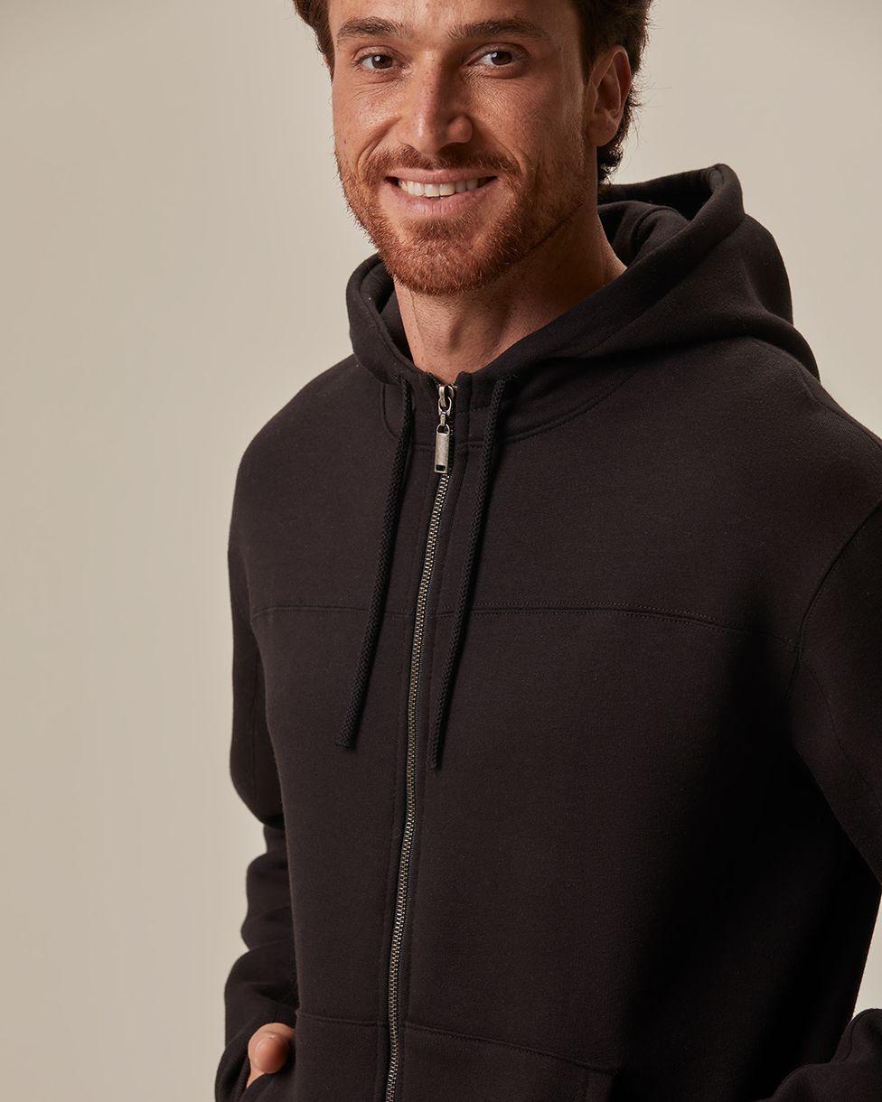 Jaqueta Masculina Abraço Com Capuz Em Moletom Comfy Touch Flanelado Preto - XGG