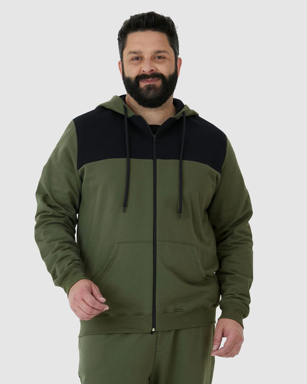 Jaqueta Masculina Plus Size Bicolor Em Moletom Flanelado