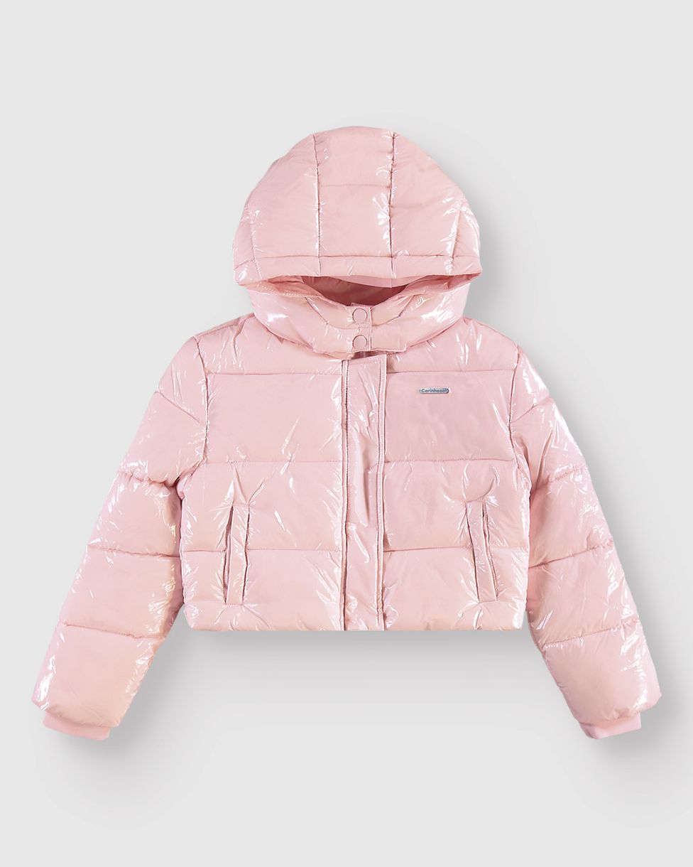 Jaqueta Menina Puffer Com Capuz Em Tecido Metalizado - Carinhoso