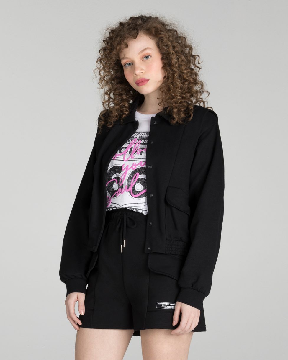 A Jaqueta Oversized tem caimento mais folgadinho no corpo, contando com gola padrão, abertura por botões de pressão, mangas longas e bolsos frontais com lapelas. Com detalhes de recortes pela peça. Além disso, essa peça foi feita em moletom, sendo um tecido macio e super confortável, ideal para ser usado nos dias mais frios do ano. Aposte com shorts de moletom!