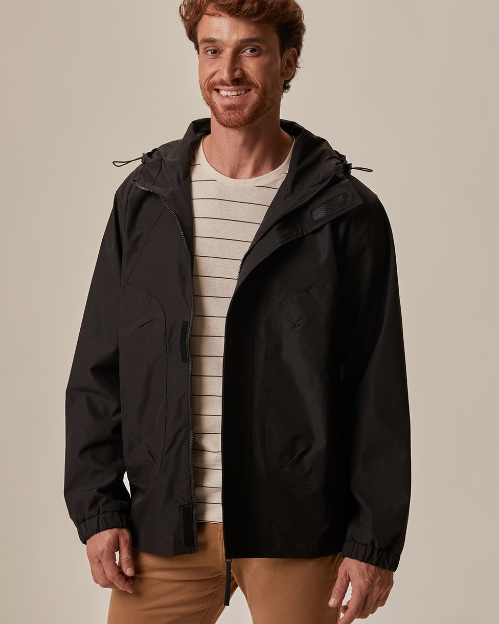 Jaqueta Parka Masculina Com Capuz Em Nylon Preto - P