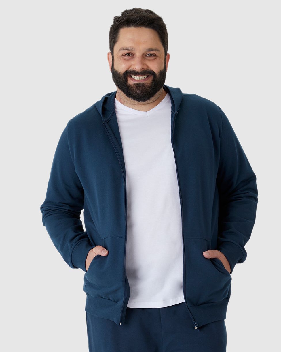 Jaqueta Básica Masculina Plus Size Com Capuz Em Moletom