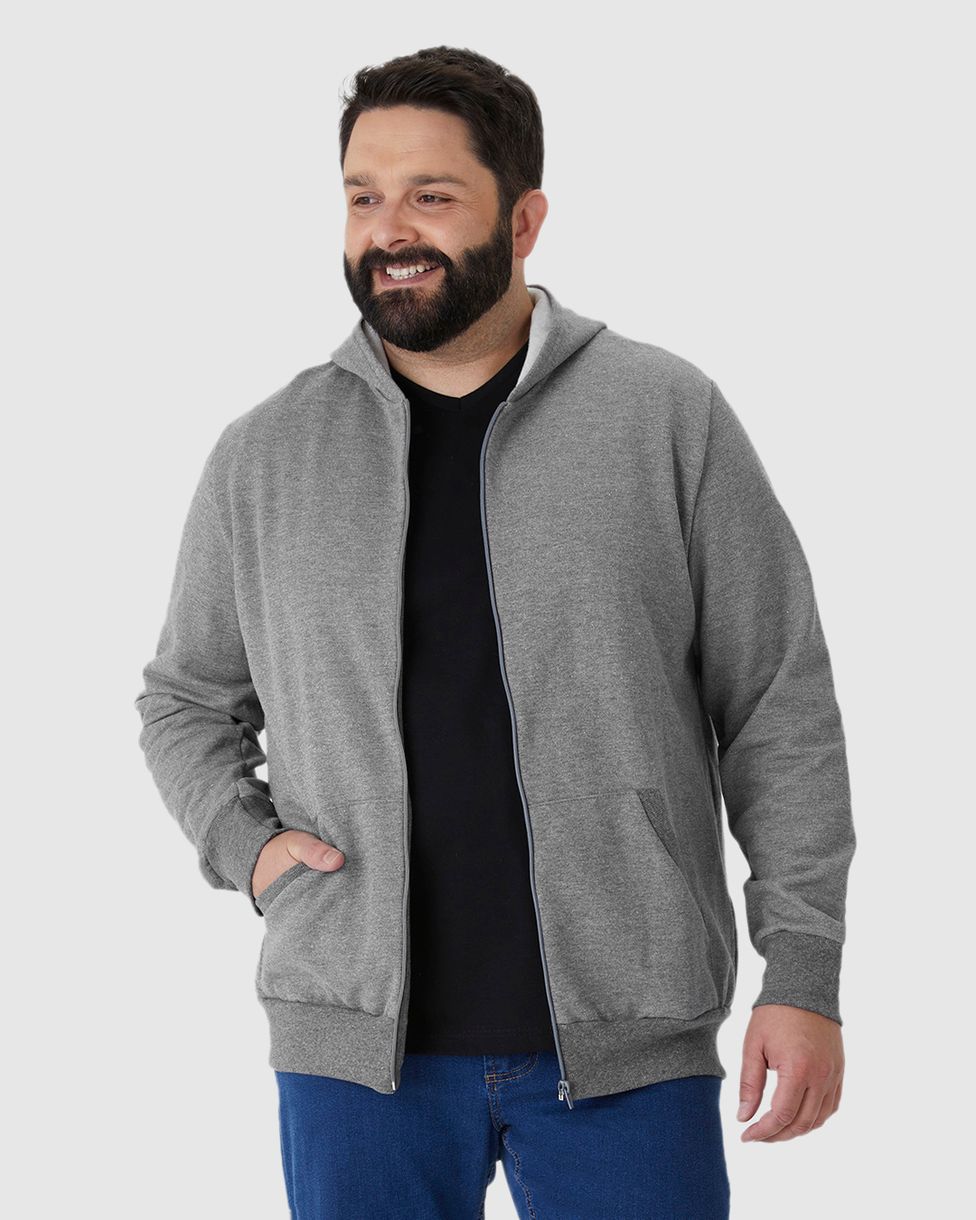 Jaqueta Básica Masculina Plus Size Com Capuz Em Moletom