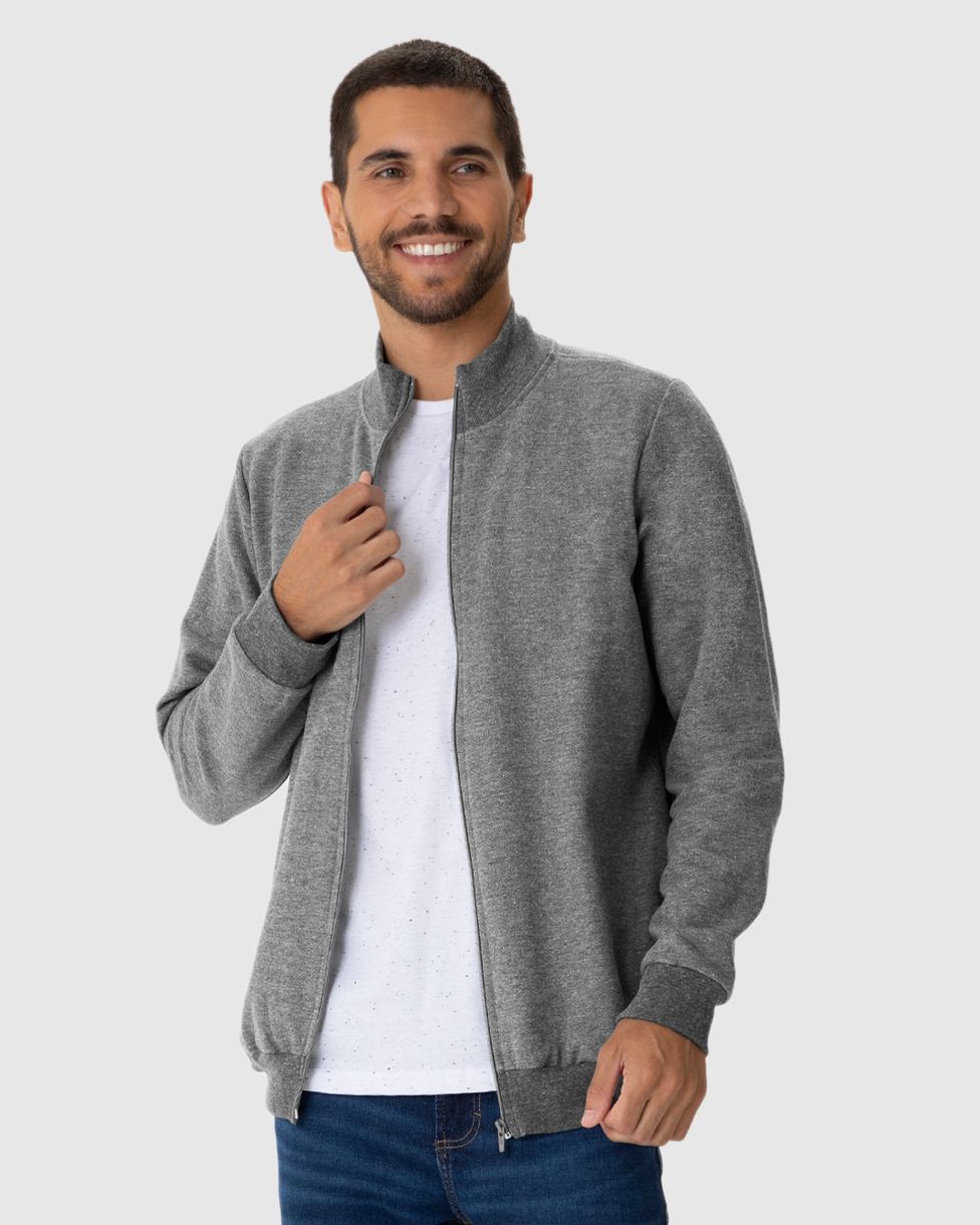 Jaqueta Básica Masculina Gola Alta Em Moletom Flanelado