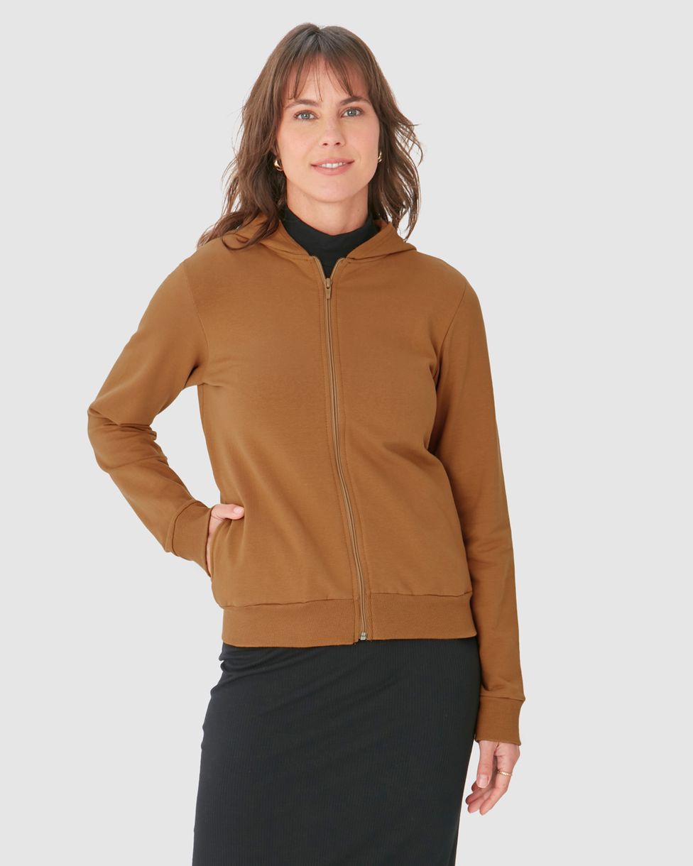 Jaqueta Básica Feminina Com Capuz Moletom Stretch Flanelado