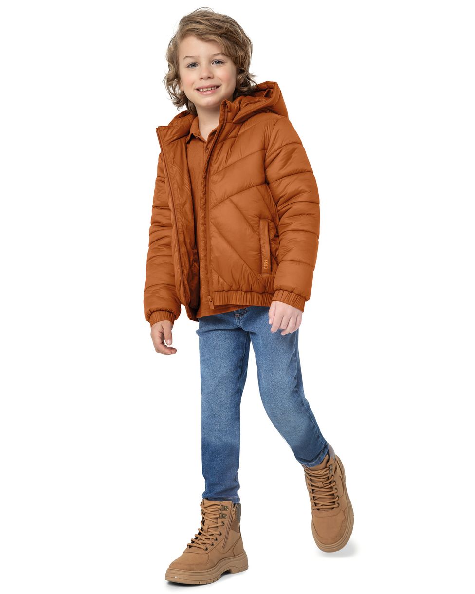Jaqueta confeccionada em tafetá. Em modelo Puffer, essa peça possui capuz, abertura frontal por zíper, mangas longas e bolsos laterais. Unissex, é a peça perfeita para os meninos e meninas!