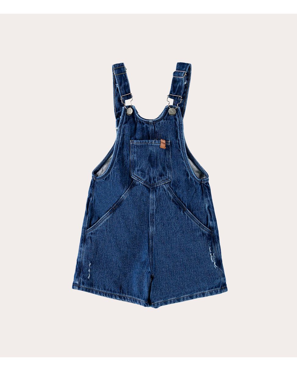Jardineira infantil confeccionada em malha denim, de algodão com elastano. A Jardineira oferece versatilidade de uso para as meninas, além de ser uma peça curinga que pode ser usada em todas as estações do ano, ela conta com comprimento curto, decote U, alças com reguladores de metal edetalhe de recortes frontais com detalhe para os bolsos funcionais. Ainda apresentando bolso quadrado no peitoral com etiqueta decorativa. Complete o look com tênis de cano baixo e boné!