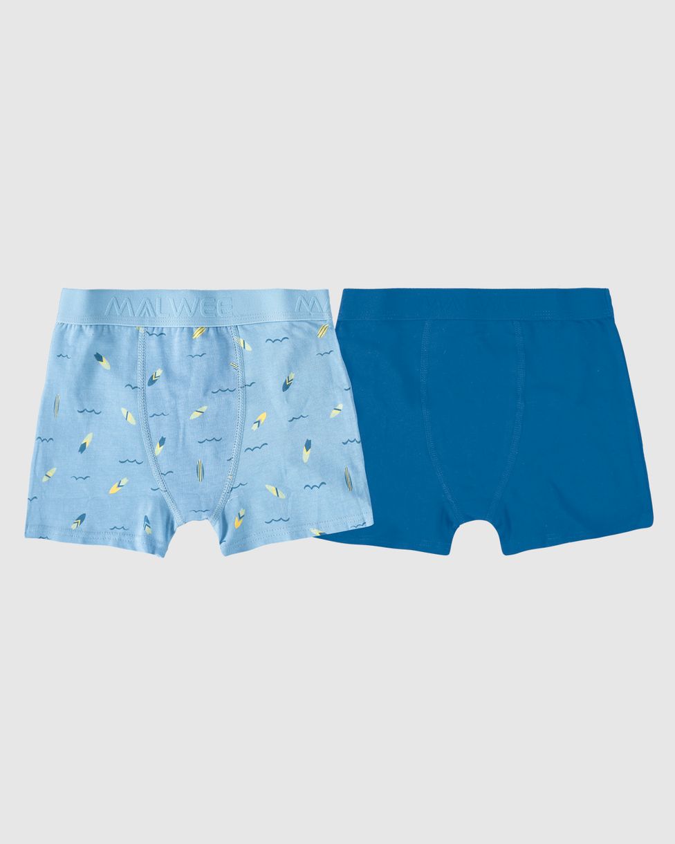 Kit de cuecas infantis confeccionadas em cotton lighr, um tecido de toque macio e super confortável. Em modelagem boxer, as peças contam com cós aplicado em elástico. O kit possui 2 variações, sendo: uma cueca em estampa corrida com temática do verão, de pranchas de surf e outro modelo liso. Para total conforto das crianças!