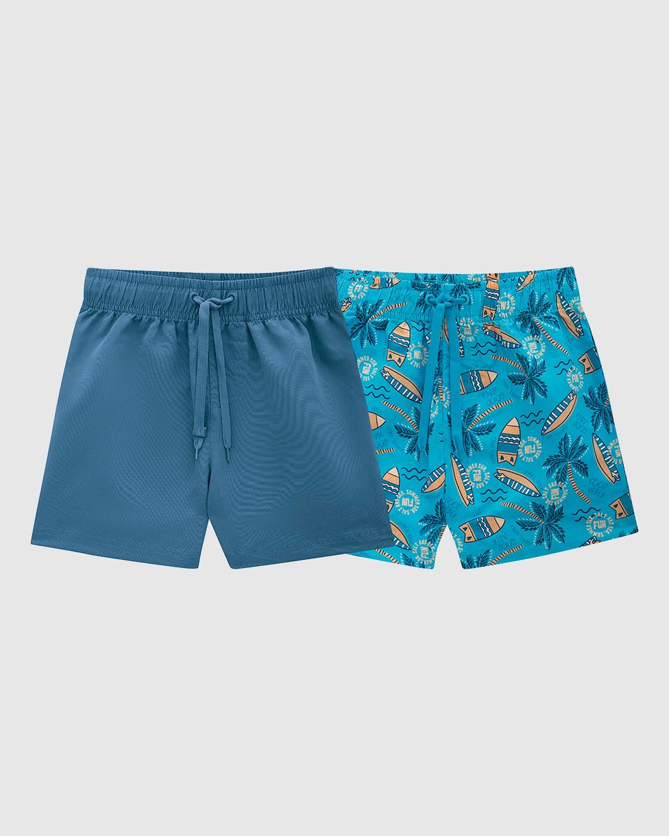 Kit 2 Shorts De Banho Infantil Menino Em Microfibra Malwee Kids Azul - 6