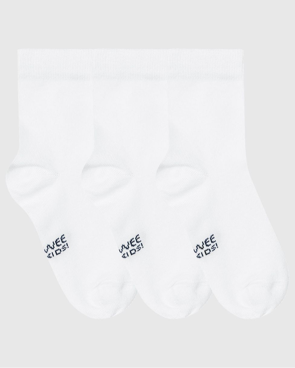 Kit com 3 meias infantis confeccionadas nos tecidos de algodão, poliamida, elastano e outras fibras. Modelo Unissex, o kit possui 3 meias na cores preto, cinza e branco. Com detalhe de marcação de costura na ponta de meia. Servindo as numerações 16-20,21-25,26-30, 31-35 e 35-39.