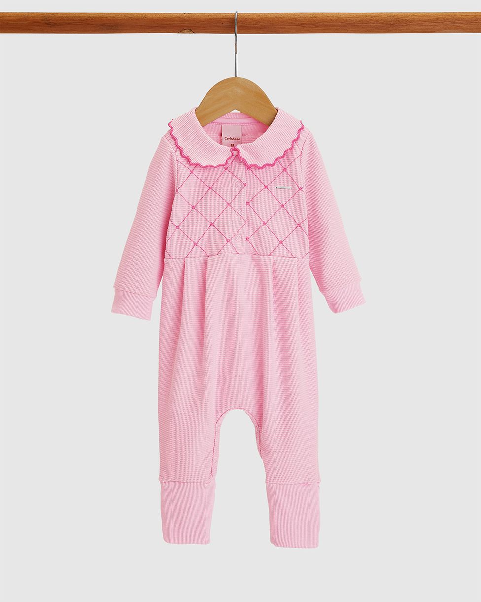 Macacão Bebê Menina Com Bordado Em Malha Texturizada - Carinhoso
