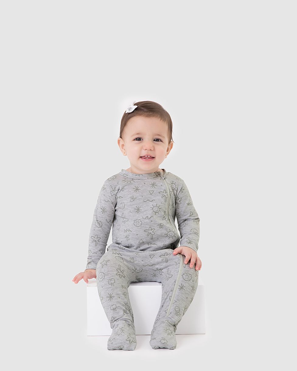 Macacão Bebê Unissex Pezinho Estampado Zíper Frontal Em Algodão Malwee Kids Cinza - 12M
