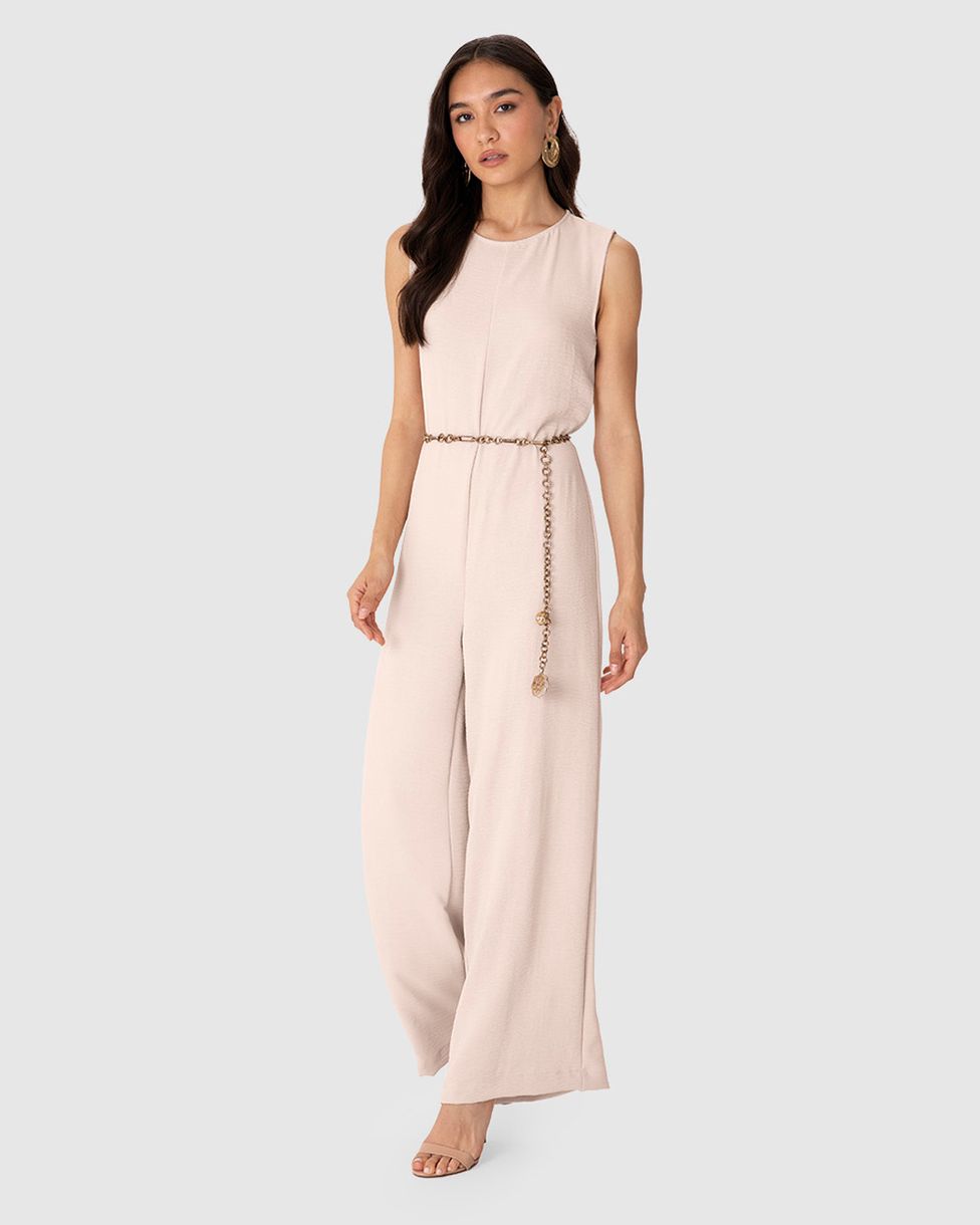 Macacão Feminino Reto Acompanha Cinto Em Tecido Leve Texturizado - ENFIM