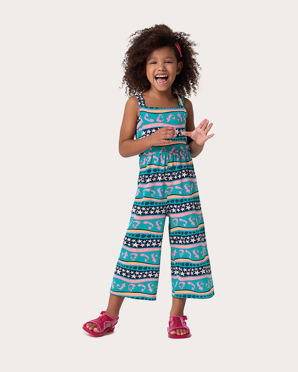 Este Macacão especial A Pequena Sereia® apresenta modelagem Pantacourt, com decote quadrado, alças médias franzidas e costas aplicadas com elástico Lastex, que deixa a peça super confortável para as meninas. Além disso, essa peça foi feita em malha de algodão Cotton Light, um tecido de toque macio e super confortável no vestir. Combine com sandália e bolsa!