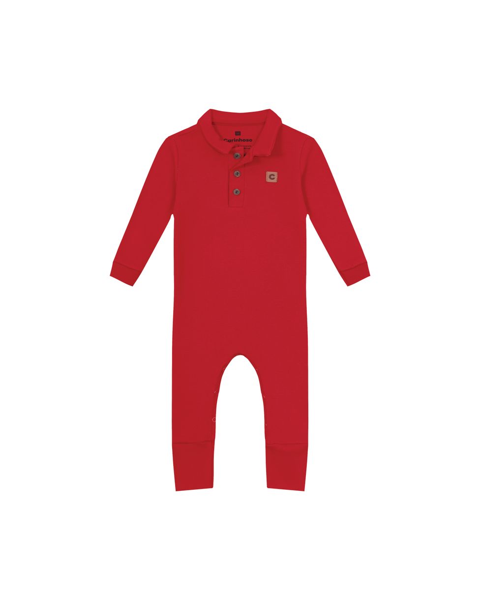Macacão Longo Menino Gola Esporte Em Malha Suedine - Carinhoso
