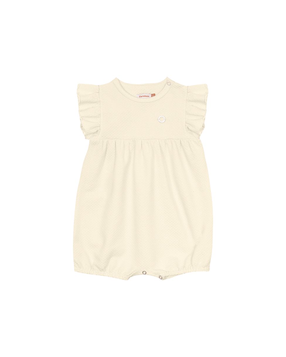 Macacão Menina Amplo Manga Babado Em Malha Texturizada - Carinhoso
