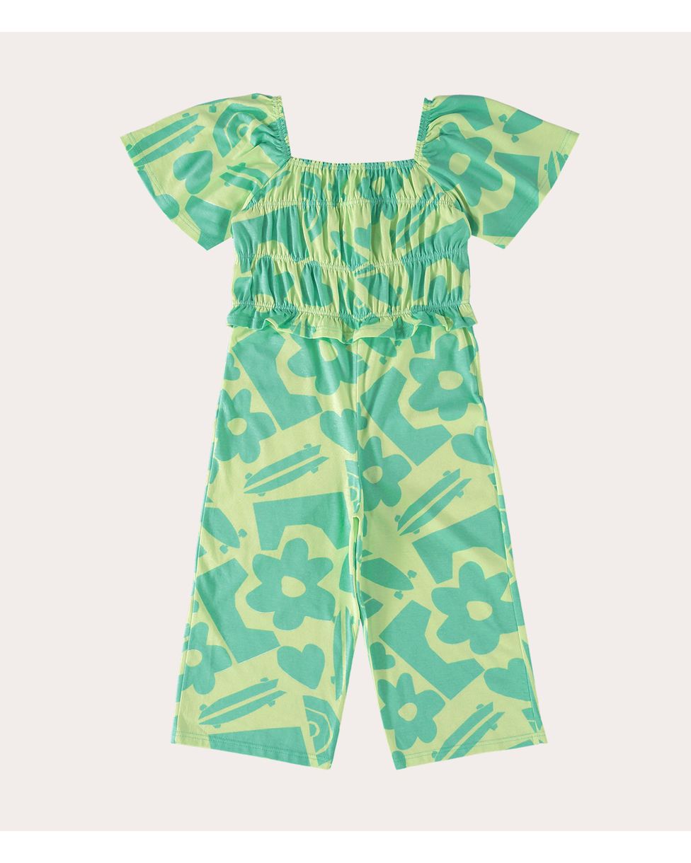 Macacão infantil feito em malha de algodão. Esse macacão em modelagem Pantacourt Estampado, que segue amplo até a barra, terminando na altura dos tornozelos, também apresenta busto em lastex, decote reto e alças medianas com franzidos. Além disso, ele foi feito em malha de algodão, conhecido por seu conforto e versatilidade, com toque macio e fácil manuseio. Uma peça única de muito estilo e praticidade para as pequenas!
