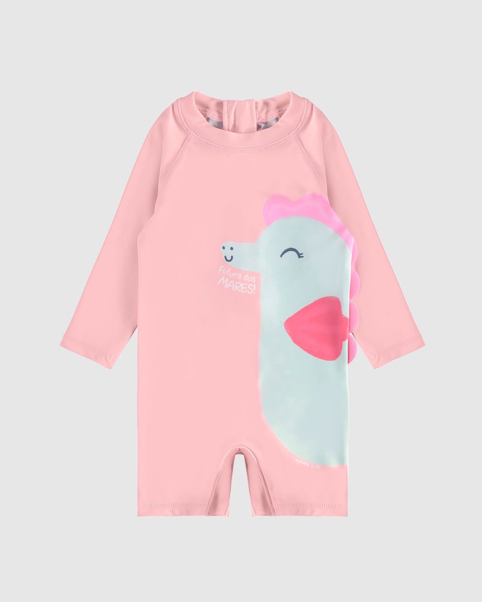 Macacão Praia Infantil Menina Manga Longa Em Malha UV50+ Malwee Kids
