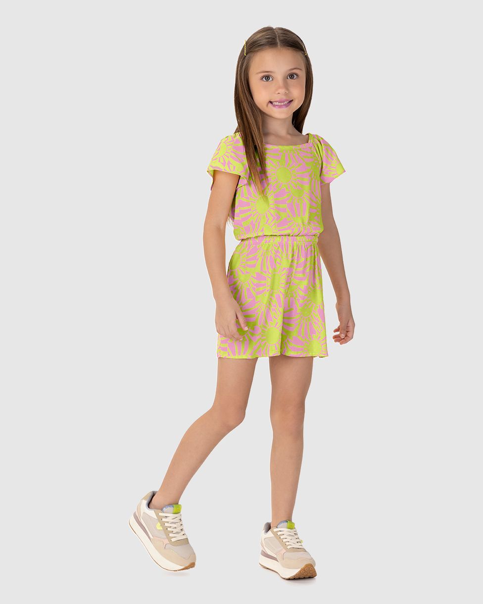 Macaquinho Infantil Menina Estampado Acinturado Em Viscose Malwee Kids