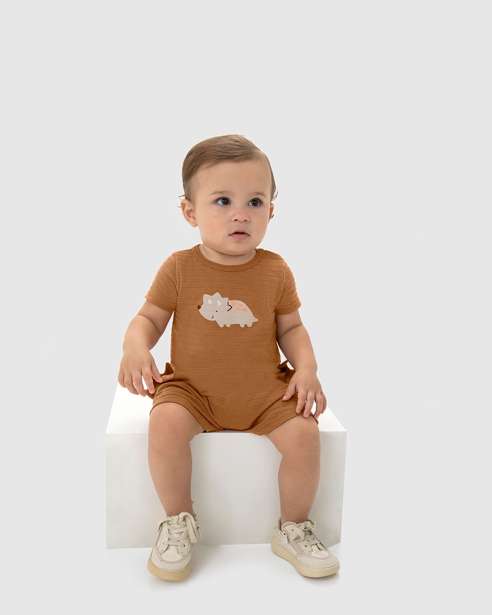 Macaquinho Infantil Menino Aplique Lateral Em Malha Texturizada Malwee Kids