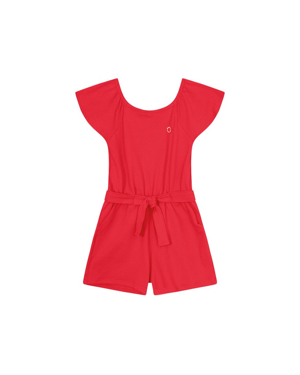 Macaquinho Menina Acinturado Em Malha Texturizada - Carinhoso