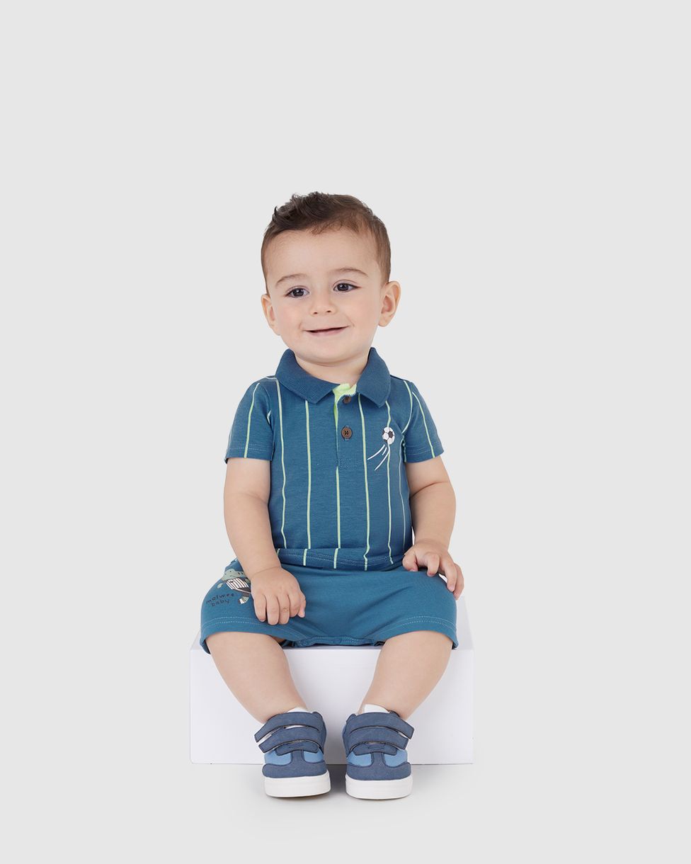 Macaquinho Polo Bebê Menino Listrado Em Algodão Malwee Kids