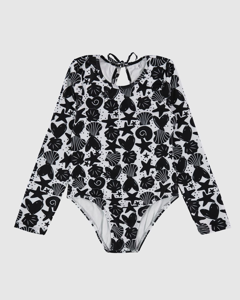 Maiô Infantil Menina Manga Longa Estampado Em Malha UV50+ Malwee Kids