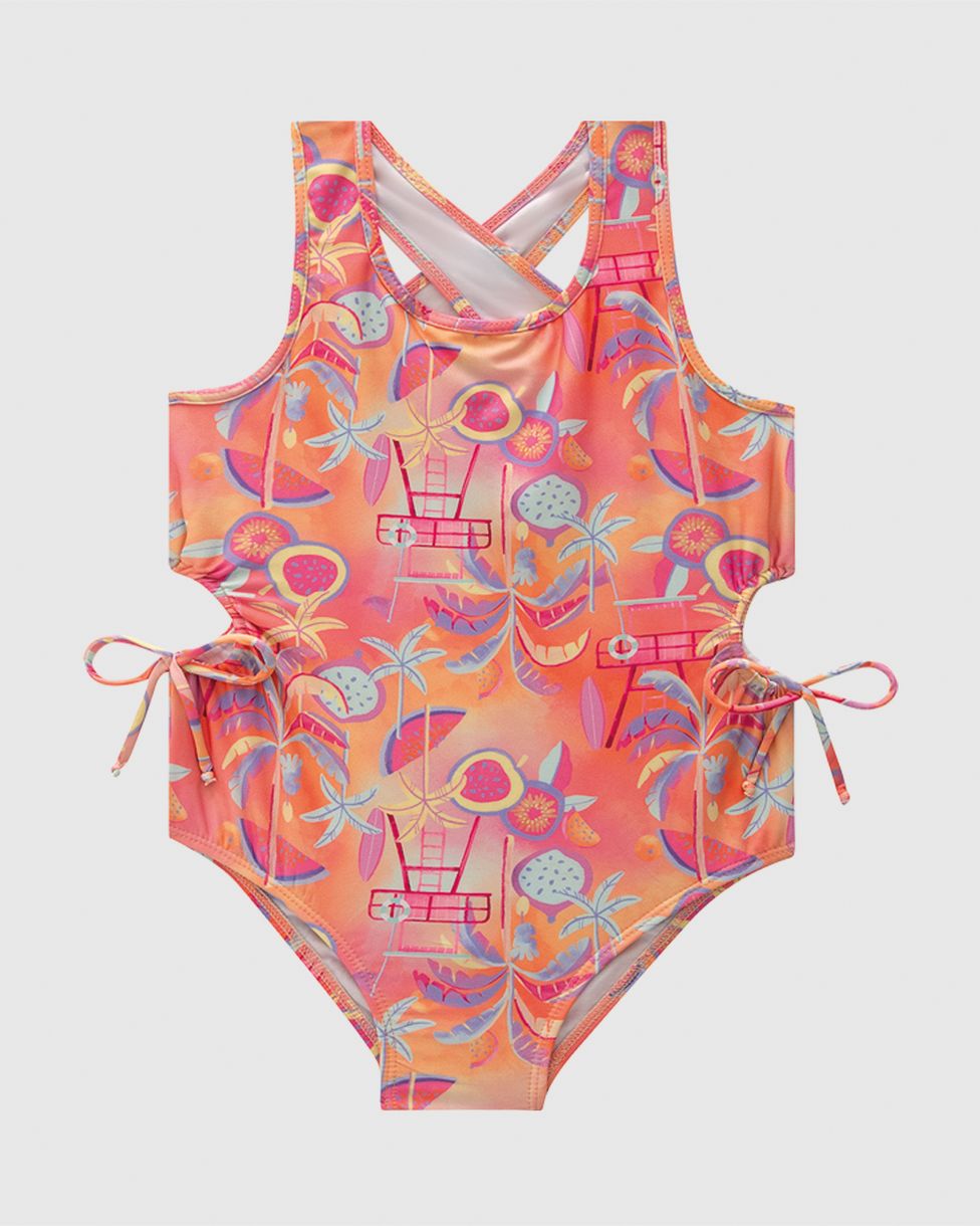 Maiô Infantil Menina Transpassado Detalhe Vazado Em Malha UV50+ Malwee Kids Laranja - 10