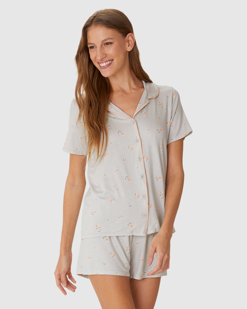 Pijama Curto Feminino Americano Estampado Em Viscose Stretch