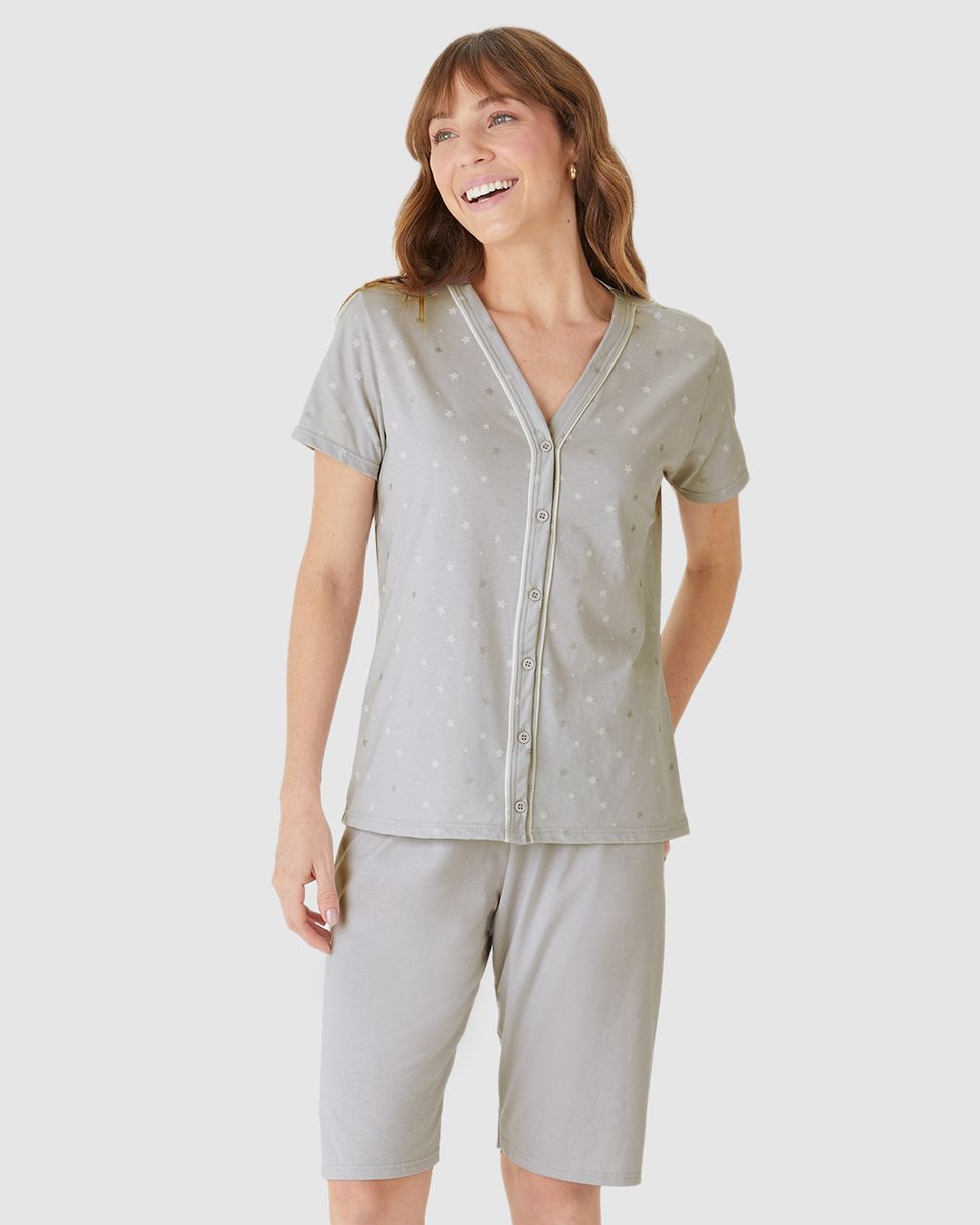 Pijama Curto Feminino Bermuda Ciclista Em Malha Algodão Cinza - P