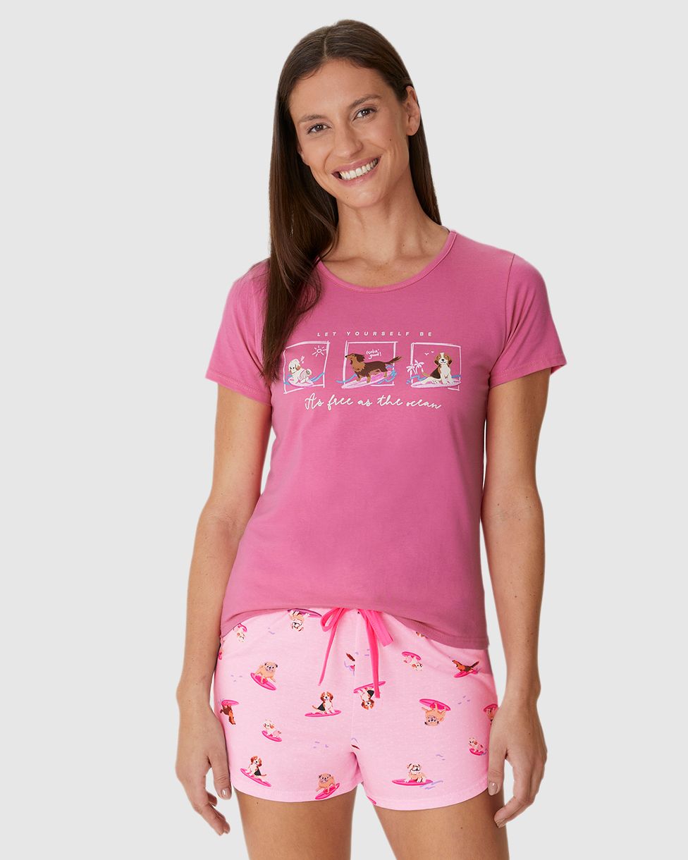 Pijama Curto Feminino Blusa Estampa Com Glitter Em Algodão